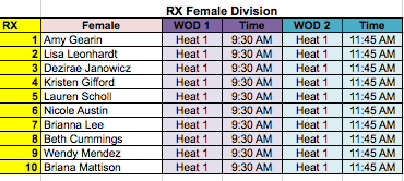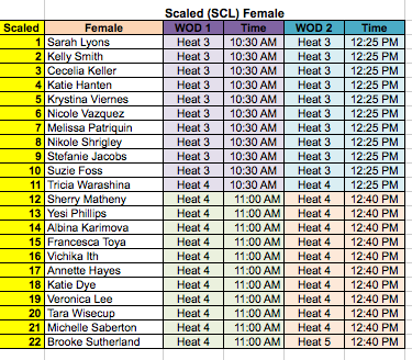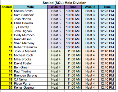 Please make sure to be on site no later then 8:45am to ensure proper time for check in/registration. At check in, you will receive a tentative itinerary inclusive of your assigned Heats. Our staff is working diligently to ensure a timely event so it is important that you note what Heat and tentative time you are assigned to so we can stick to the schedule. Heats will be released early this week and you will be responsible for being warmed up and prepped for WODs prior to your heat starting. We will post this on the FB Page and Event Website to review. Heats have been assigned at random within your competing group.